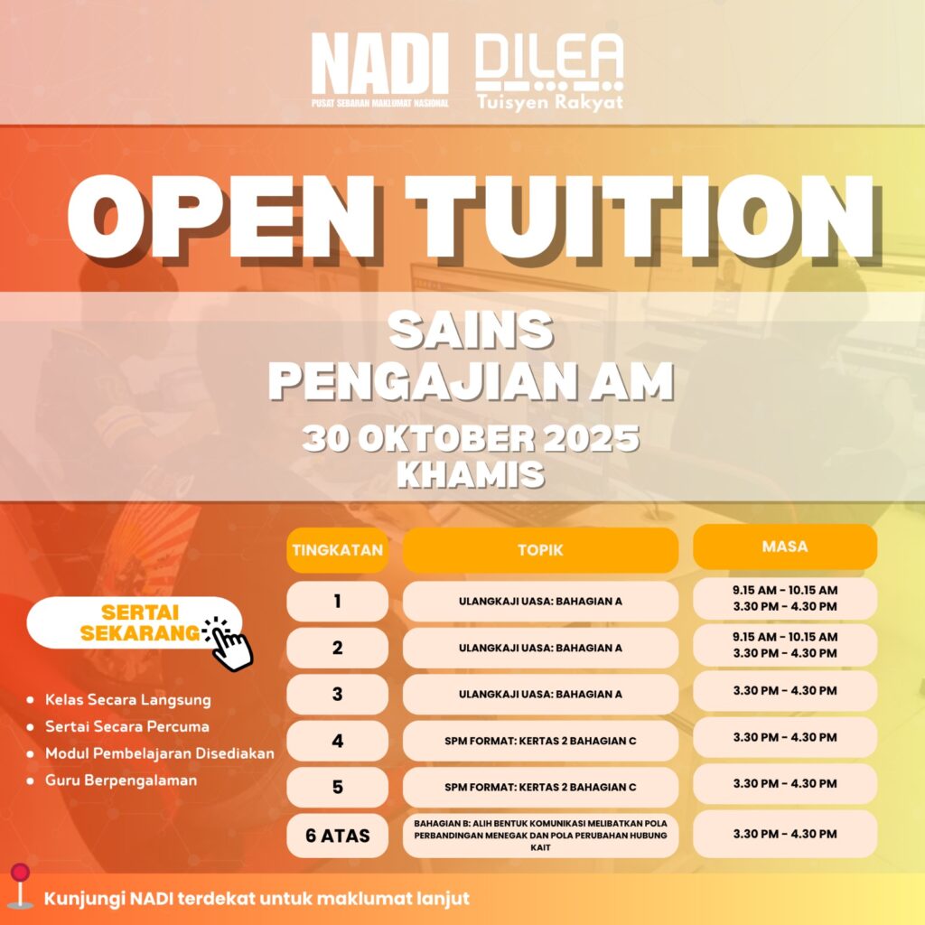 Jom sertai Open Tuition bersama NADI DILEA: Tuisyen Rakyat! 🚀